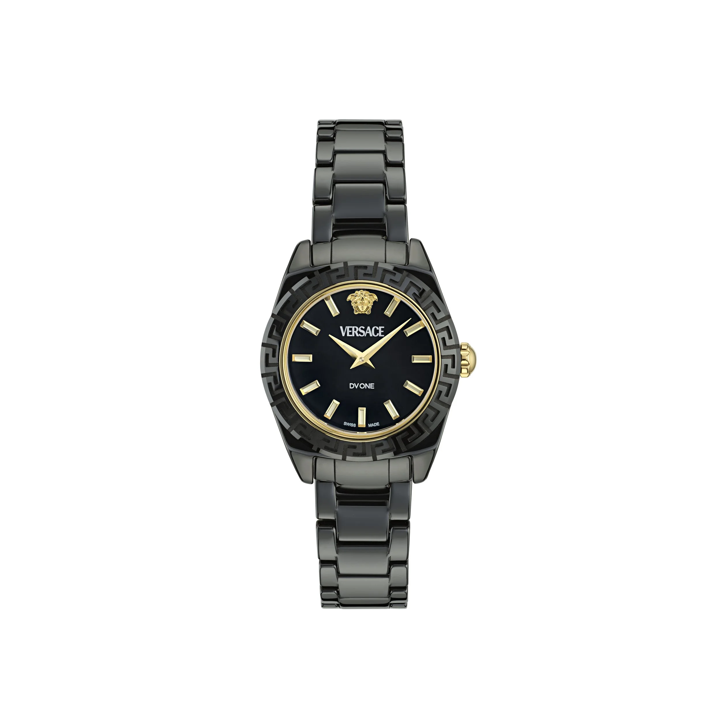 After the great success both for gents and ladies, the most loved dv one is back in a mini 28mm version to embrace elegance and versatility. This timeless monochromatic timepieces is detailed by the three-dimentional greca at 12h as well as the greca on the top ring. The inscrepted “dvone” on the dial supports the iconicity of this watch