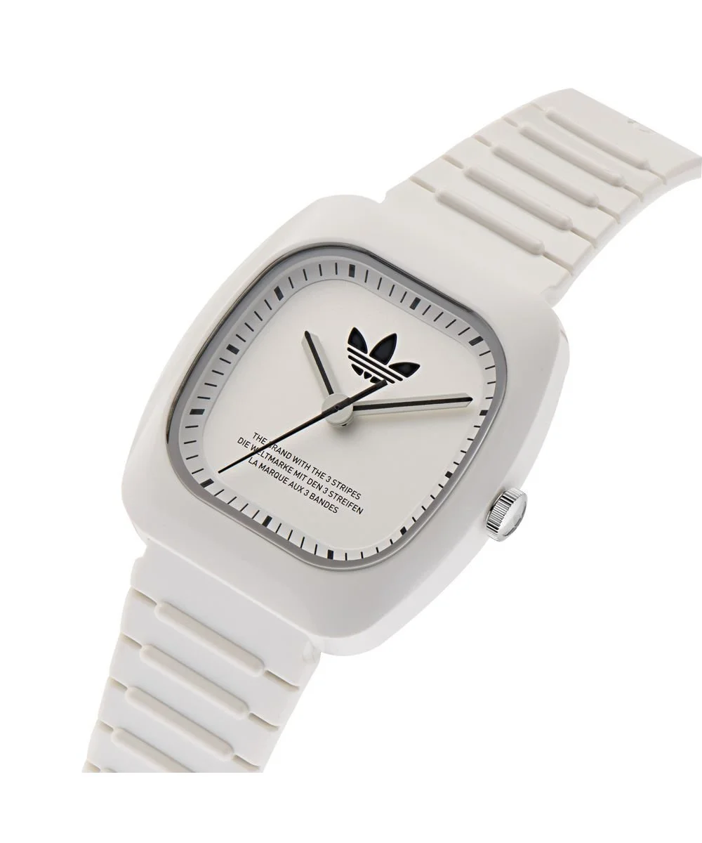 Celebrate past icons by wearing the icons of the future. This watch has vintage soul with modern influences and is made with planet-minded materials. A retro case shape comes in eco-ceramic, with gentle design lines for an elegant finish. The bio-resin strap is comfortable, and the Trefoil logo adds a sporty touch.